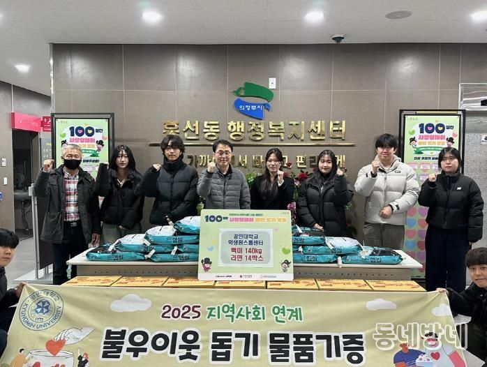 동네방네 김형규 기자 | 의정부시 흥선동행정복지센터는 12월 23일 경민대학교 학생원스톱센터가 ‘100일간 사랑릴레이 배턴 잇기’에 동참하해 백미 140kg, 라면 14상자를 기탁했다고 밝혔다.