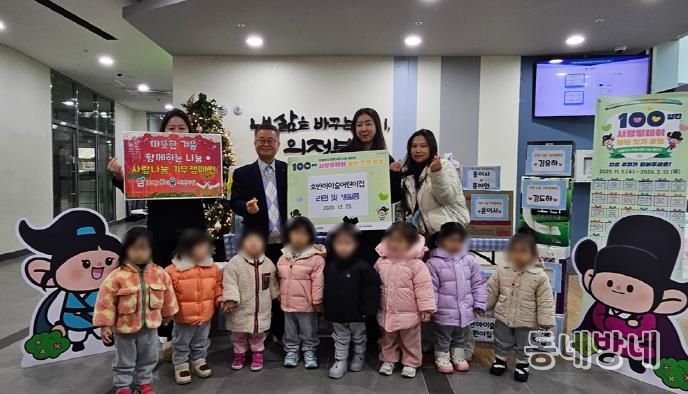 동네방네 김형규 기자 | 의정부시 송산3동행정복지센터은 12월 23일 호반아이숲어린이집이 ‘100일간 사랑릴레이 배턴 잇기’에 참여해 라면, 휴지, 즉석밥 등 생필품을 전달했다고 밝혔다.