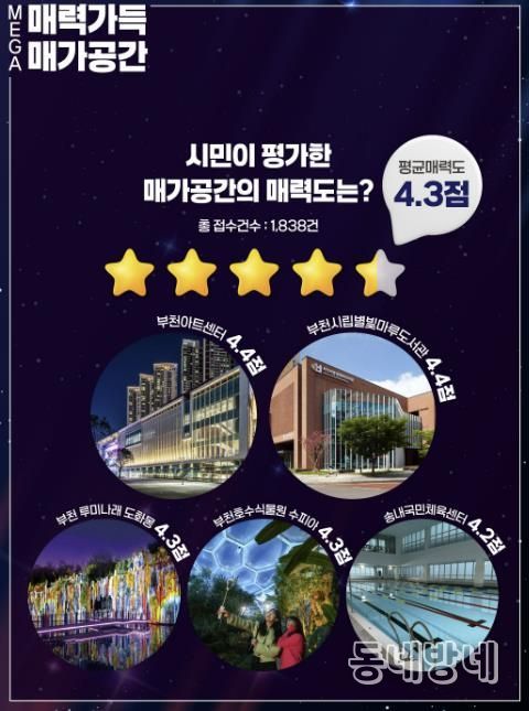 동네방네 김형규 기자 | 부천시는 시민이 직접 참여한 ‘MEGA(매가) 공간’ 매력도 조사 결과를 발표했다. 이번 공모는 공간에 대한 시민의 체감도와 이용 경험을 파악하고, 이를 바탕으로 향후 공간 운영과 정책 방향을 설정하기 위해 실시됐다.