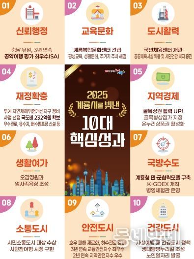 동네방네 김형규 기자 | 계룡시는 시민 참여와 공정한 평가를 통해'2025 계룡시를 빛낸 10대 성과'를 최종 선정·발표했다.