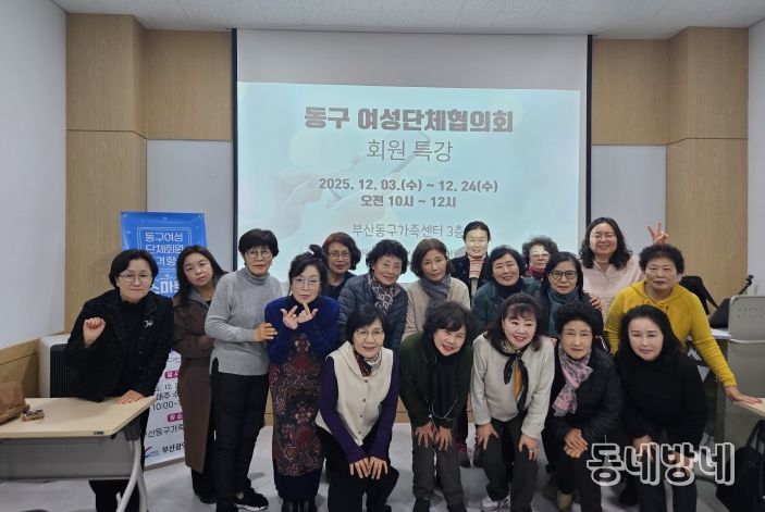 동네방네 김형규 기자 | 부산광역시 동구는 여성과 가족이 함께 행복한 성평등 도시 동구 조성을 위한 노력의 일환으로, 동구여성단체 회원들을 대상으로 ‘2025년 품격향상 스마트 리더십 교육’을 11월 5일부터 12월 24일까지 진행했다.