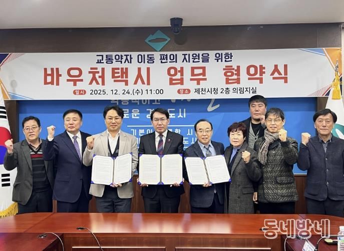 동네방네 김형규 기자 | 제천시는 지난 24일 교통약자의 이동권 보장과 이동 편의 증진을 위해 청풍호콜센터, ㈜티머니 모빌리티와 바우처택시 업무협약을 체결했다.