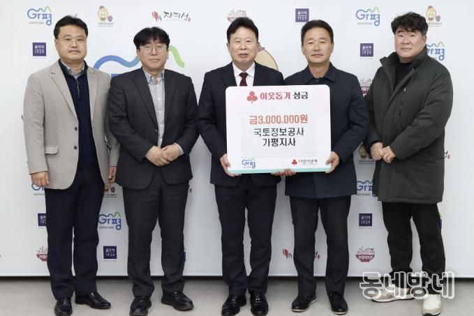 동네방네 김형규 기자 | 한국국토정보공사 가평지사는 지난 24일 지역 내 어려운 이웃을 돕기 위한 성금 300만원을 가평군에 기탁했다.