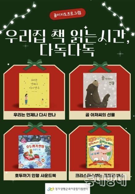 또한 놀이지도 프로그램 ‘우리 집 책 읽는 시간, 다독다독’을 통해 크리스마스 연계 도서 4종 중 1권을 제공하고, 독서 활동과 연계한 놀이 방법을 안내해 가정 내 독서 활동을 지원했다. 관련 독서·놀이 활동 영상은 센터 유튜브 채널을 통해 제공됐다.