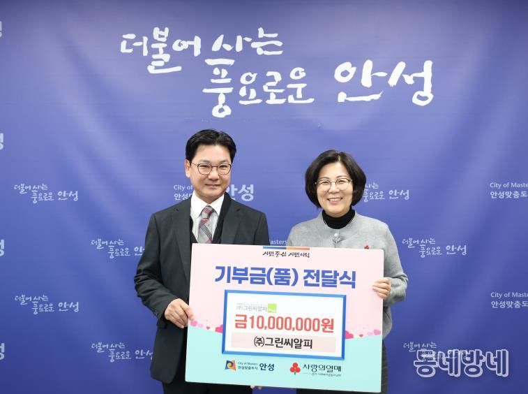 동네방네 김형규 기자 | 안성시는 지난 12월 24일, ㈜그린씨알피로부터 1,000만 원 기부금을 전달받았다고 밝혔다.