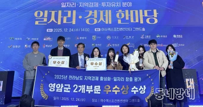 동네방네 김형규 기자 | 영암군이 24일 여수엑스포컨벤션센터에서 열린 ‘2025년 전남 일자리·경제 한마당’에서 일자리 창출 우수상을 수상했다.
