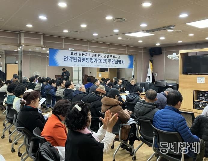 동네방네 김형규 기자 | 오산시 남촌동 행정복지센터는 지난 24일 궐동문화공원 조성사업과 관련한 환경영향평가 주민설명회를 개최하고, 지역 주민 60여 명을 대상으로 사업 내용을 공유하며 의견을 수렴했다고 밝혔다.