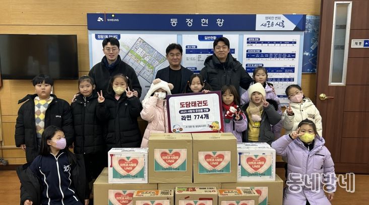 동네방네 김형규 기자 | 도담태권도는 지난 26일, 정왕1동 행정복지센터에 방문해 정왕1동 저소득 가구를 위한 라면 774개를 전달했다.