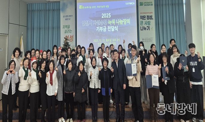 동네방네 김형규 기자 | 인천광역시는 지난 12월 22일 (사)인천YWCA와 함께 ‘자원순환 녹색 나눔장터’운영을 통해 조성된 기부금 약 4백여만 원을 한부모가정과 자립준비청년 등 지역사회 이웃 10곳에 전달했다고 밝혔다.