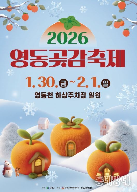 동네방네 김형규 기자 | 충청북도 영동군의 대표 겨울 축제인 2026 영동곶감축제가 오는 2026년 1월 30일부터 2월 1일까지 3일간 영동천 하상주차장 일원에서 열린다.