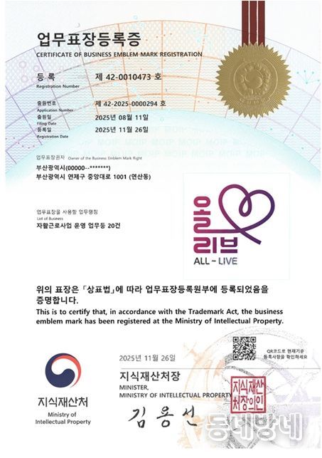 동네방네 김형규 기자 | 부산시는 지자체 최초로 시 대표 자활정책 브랜드인 '올리브(ALL-LIVE)'를 특허청에 상표로 등록했다고 밝혔다.