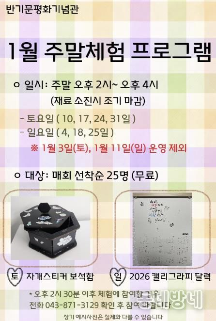 동네방네 김형규 기자 | 음성군 제8대 유엔사무총장 반기문 평화기념관에서는 관람객을 위해 2026년 1월 주말 무료 체험 프로그램을 운영한다.