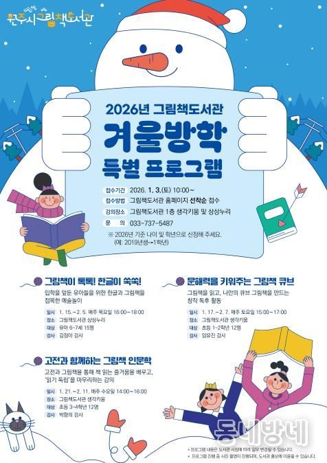 동네방네 김형규 기자 | 원주시 그림책도서관은 겨울방학을 맞은 어린이를 대상으로 특별 프로그램을 운영한다.