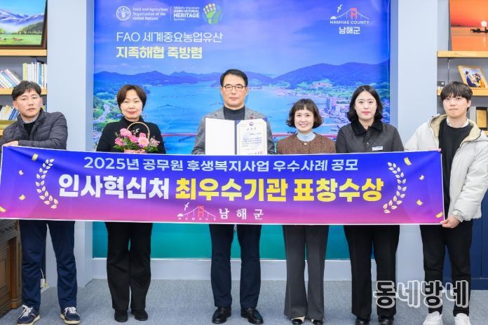 동네방네 김형규 기자 | 남해군이 인사혁신처장이 주최한 2025년 공무원 후생복지 우수사례 공모에서 전국 최우수 기관으로 선정됐다.