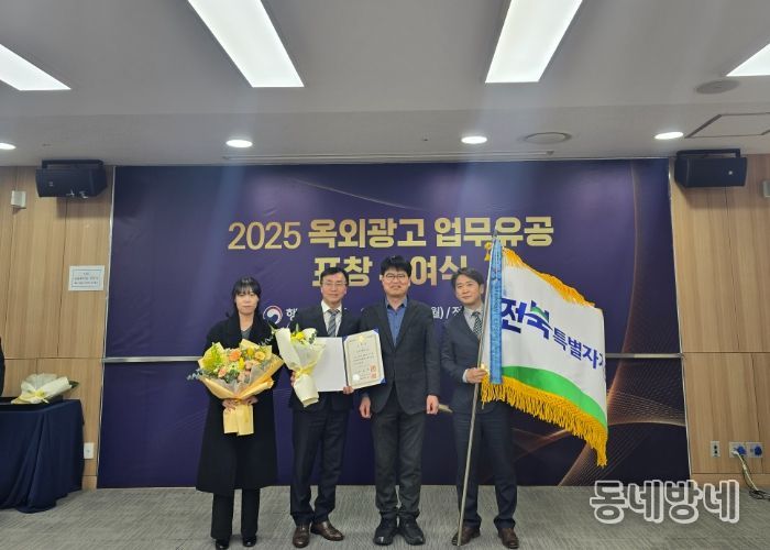 동네방네 김형규 기자 | 전북특별자치도가 행정안전부가 주관한 ‘2025년 옥외광고 정책 평가’에서 전국 광역자치단체 가운데 최고 등급인 ‘국무총리 표창’을 수상했다고 29일 밝혔다.