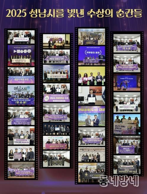 동네방네 김형규 기자 | 성남시가 민선 8기 출범 이후 해마다 수상 실적을 늘려, 2022년 7월부터 2025년 12월까지 외부기관으로부터 총 220건의 상을 수상한 것으로 나타났다.