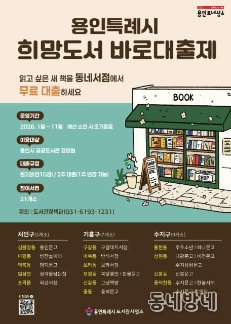 동네방네 김형규 기자 | 용인특례시는 시민들의 높은 호응을 얻었던 희망도서 바로대출제를 내년 1월 2일부터 시행한다고 30일 밝혔다.