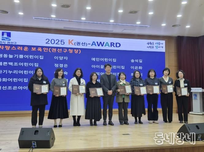 동네방네 김형규 기자 | 권선구는 지난 29일, 어려운 여건 속에서도 헌신적으로 봉사해 온 어린이집보육교직원의 사기 진작을 위해 ‘자랑스러운 보육인’ 10명을 선정하여 권선구청장 표창을 수여했다.