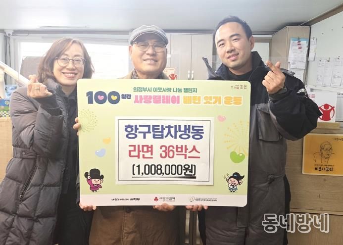 동네방네 김형규 기자 | 의정부시 장암동주민센터는 12월 29일 항구탑차냉동이 라면 36상자(100만 원 상당)를 기부하며 ‘100일간 사랑릴레이 배턴 잇기’에 동참했다고 밝혔다.