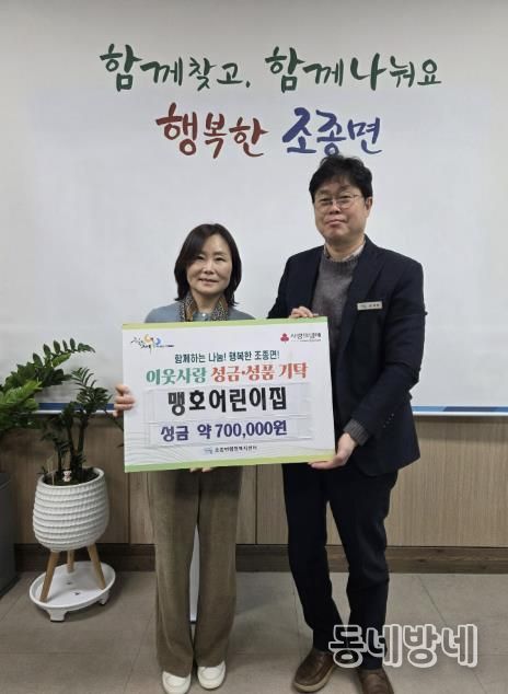 임진섭 조종면장은 “어려운 이웃을 먼저 생각해 주신 따뜻한 마음에 깊이 감사드린다”며 “기탁해 주신 성금은 취약계층 가구에 실질적인 도움이 될 수 있도록 소중하게 사용하겠다”고 전했다.