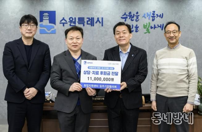 동네방네 김형규 기자 | 수원시 창업지원센터 입주기업협의회가 “학대 피해아동 지원에 사용해 달라”며 수원시에 후원금 1100만 원을 전달했다. 전달식은 30일 이재준 수원시장 집무실에서 열렸다.