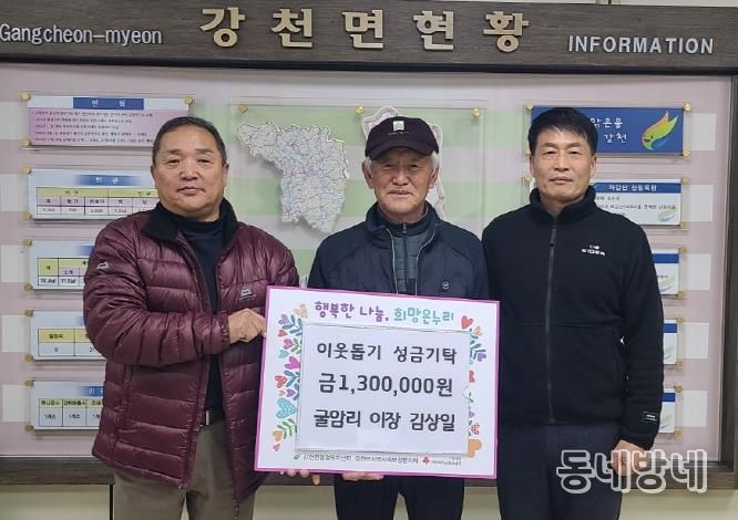 이날 전달식에서 굴암리 이장 김상일씨는 “작은 정성이지만 관내 어려운 이웃들이 추운 겨울을 따뜻하게 보내는 데 도움이 되길 바란다”며, 앞으로도 힘이 닿는 데까지 봉사를 이어가고 싶다“ 고 소감을 밝혔다.