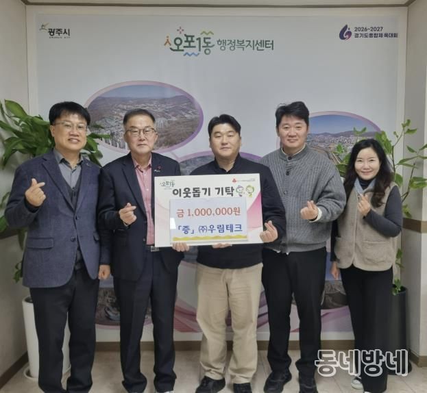 동네방네 김형규 기자 | ㈜우림테크 임택현 대표는 30일 지역 내 어려운 이웃을 위해 사용해 달라며 성금 100만 원을 광주시 오포1동 행정복지센터에 전달했다.