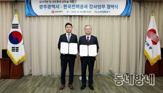 동네방네 김형규 기자 | 한국전력 감사실은 12월 30일 ‘광주광역시 감사위원회’과 감사 전문성 제고와 내부통제 강화를 위한 업무협약(MOU)을 체결했다.