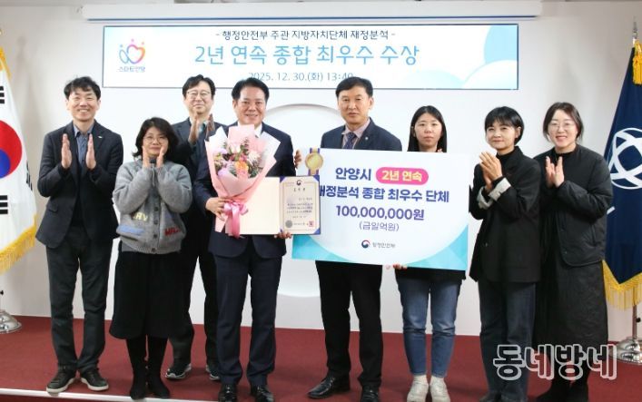 동네방네 김형규 기자 | 안양시는 행정안전부에서 실시한‘2025년(2024 회계연도) 지방재정분석’에서 종합점수 ‘가’등급을 받아 2년 연속‘종합 최우수’지자체로 선정됐다.