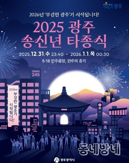 행사에는 강기정 시장을 비롯한 2025년 한 해 광주를 빛낸 시민대표 18명으로 구성된 타종 인사와 시민 등 3000여명이 참석할 예정이다.
