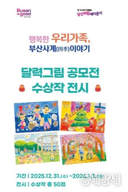 동네방네 김형규 기자 | 부산시는 오늘(31일)부터 내년 1월 3일까지 도시철도 1호선 시청역 연결 통로에서 '행복한 우리 가족, 부산 사계(四季) 이야기' 달력그림 공모전 우수작품을 전시한다고 밝혔다.