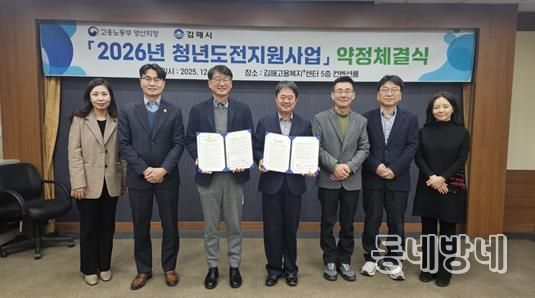 동네방네 김형규 기자 | 김해시는 고용노동부 부산지방고용노동청 양산지청과 2026년 청년도전지원사업 업무약정을 체결하고 구직단념청년의 노동시장 재진입을 위한 협력체계를 본격 가동한다고 31일 밝혔다.