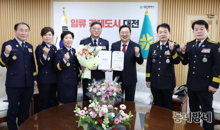 동네방네 김형규 기자 | 대전시는 31일 시청 응접실에서 이대식 대덕소방서 남성의용소방대장을 신임 대전의용소방대연합회 남성회장으로 임명했다.