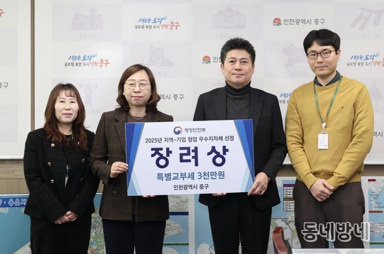 동네방네 김형규 기자 | 인천시 중구는 ‘호텔객실리사 양성 교육’을 성공적으로 운영하며, 행정안전부 주관 ‘2025년 지역-기업 협업 우수사례 공모’에서 장려상을 받았다고 31일 밝혔다. 이번 수상으로 ‘특별교부세 3천만 원 확보’ 성과도 함께 거뒀다.