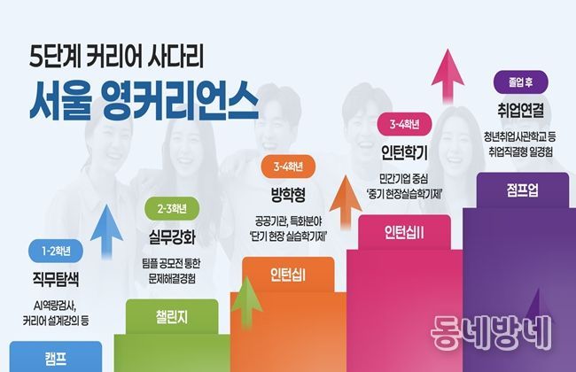 서울시는 지금까지 축적된 성과를 바탕으로 새해부터는 재학시절부터 진로 탐색과 실무 역량을 강화하는 서울 청년을 위한 5단계 인턴십 플랫폼 ‘서울영커리언스’를 본격 추진한다. 실무에 바로 투입할 수 있는 인재를 선호하는 기업 수요와 실무경험을 쌓을 기회가 부족한 청년 간 간극을 좁히기 위해 졸업한 미취업 청년에 맞춰져 있던 기존 일자리 사업을 ‘재학생 중심’으로 재편하는 것이다.