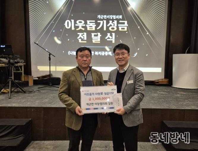 임병희 개군면장은 “항상 지역을 위해 앞장서 주시는 이장협의회에 깊이 감사드린다”며 “기탁된 성금은 꼭 필요한 분들께 소중히 전달하겠다”고 말했다.