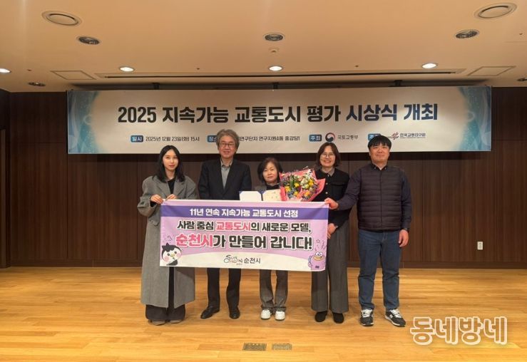 동네방네 김형규 기자 | 순천시가 국토교통부 주관 2025년 지속가능 교통도시 평가에서 인구 30만 미만 ~ 10만 이상 ‘라 그룹’ 내 우수 지자체로 선정되며, 11년 연속 우수 평가를 받는 성과를 거뒀다.
