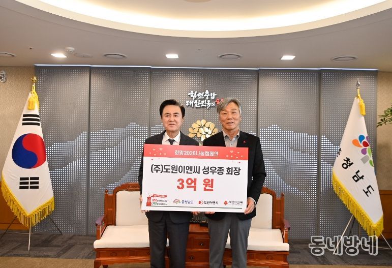 동네방네 김형규 기자 | 충남도는 31일 ㈜도원이엔씨로부터 이웃사랑 성금 3억원을 전달받았다고 밝혔다.
