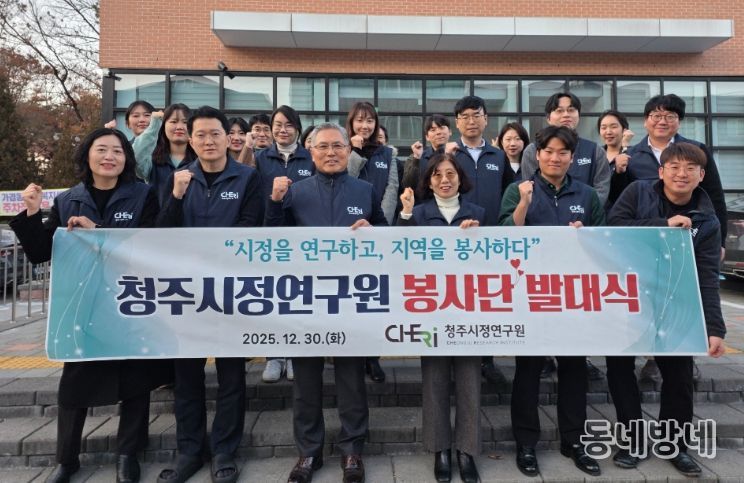 한편 청주시정연구원 봉사단은 다음 달 2일 새해 첫 봉사활동으로 연구원 일원 도로변 등 방치된 쓰레기를 수거하는 환경정화 활동을 진행할 예정이다.