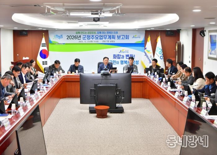 동네방네 김형규 기자 | 장성군이 2026년 군정 운영의 밑그림을 그렸다. 군은 최근 군청 상황실에서 부서장, 읍면장 전원이 참석한 가운데 새해 군정 주요업무계획 보고회를 가졌다.