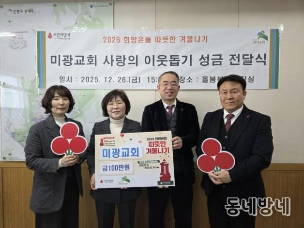 동네방네 김형규 기자 | 서울 은평구는 지난달 26일 미광교회와 2026 희망온돌 따뜻한 겨울나기 사랑의 이웃돕기 성금 전달식을 가졌다고 밝혔다.