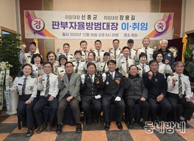 동네방네 김형규 기자 | 원주시 판부면자율방범대는 지난달 31일 자율방범대원과 관계자 등 80여 명이 참석한 가운데, 제8대 장용길 신임 대장과 제7대 신종균 전 대장의 이·취임식을 개최했다.