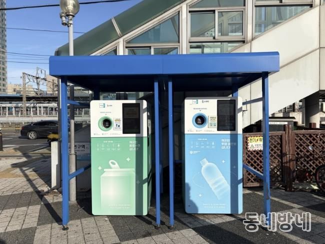 송부종합사회복지관 근방 육교에 겸용(투명페트병, 캔) 무인회수기 1대와 금정역 7번출구에 캔 전용 무인회수기 1대가 새롭게 설치했다.