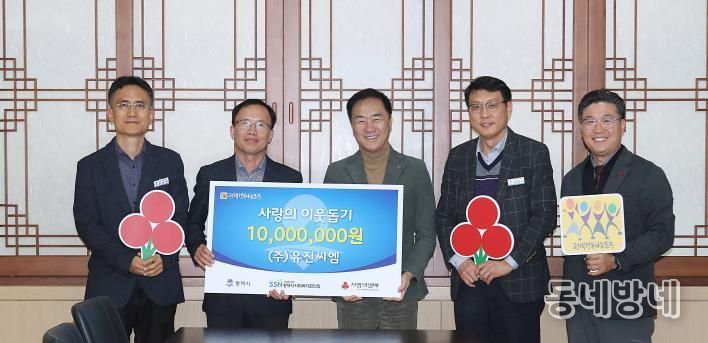 동네방네 김형규 기자 | (주)유진씨엠은 지난 29일 평택시청 대외협력실에서 평택행복나눔본부에 이웃돕기 성금 1,000만원을 전달했다.