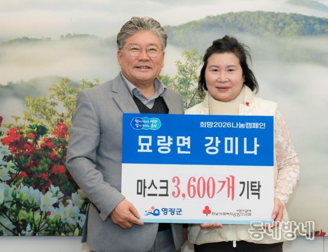 동네방네 김형규 기자 | 영광군은 2025년 12월 30일 묘량면에 거주하는 강미나 씨가 어려운 이웃들에게 전달해달라며 마스크 3,600개를 기탁해 희망2026나눔캠페인에 동참했다고 밝혔다.