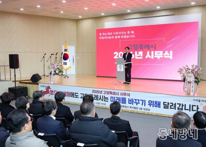 동네방네 김형규 기자 | 고양특례시는 2일, 고양시청 백석별관 대강당에서 새해 시무식을 열고 2026년 병오년의 힘찬 출발을 다짐했다.