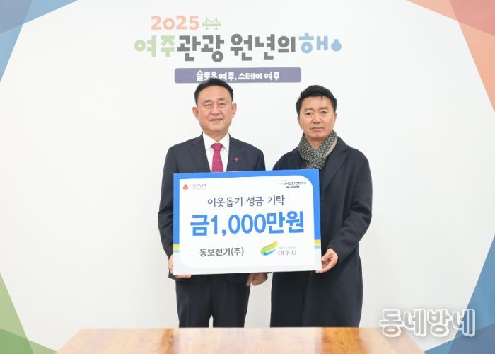 동네방네 김형규 기자 | 지난 30일 동보전기 및 주식회사 부광에너지는 여주시를 방문하여 관내 저소득층을 위한 이웃돕기 성금으로 각 1,000만원을 기탁했다