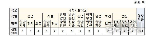 올해 선발 규모는 과학기술직군 59명, 행정직군 121명 등 총 180명으로 전년보다 18명 증가했다.