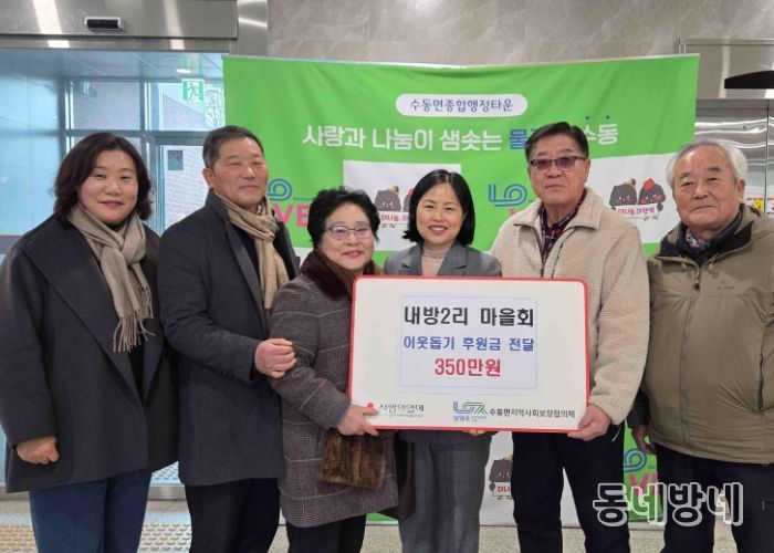 한편, 수동면 내방2리 마을회는 지난 2021년부터 지역사회 복지증진을 위해 꾸준히 후원금을 전달하는 등 나눔 문화 확산에 기여하고 있다.