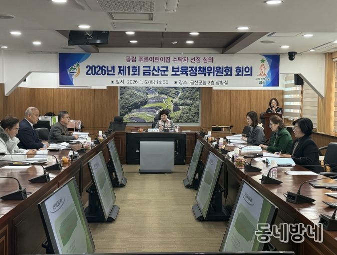 동네방네 김형규 기자 | 금산군은 지난 6일 금산군청 상황실에서 2026년 제1회 금산군 보육정책위원회를 개최하고 공립 푸른어린이집 수탁자를 선정했다.